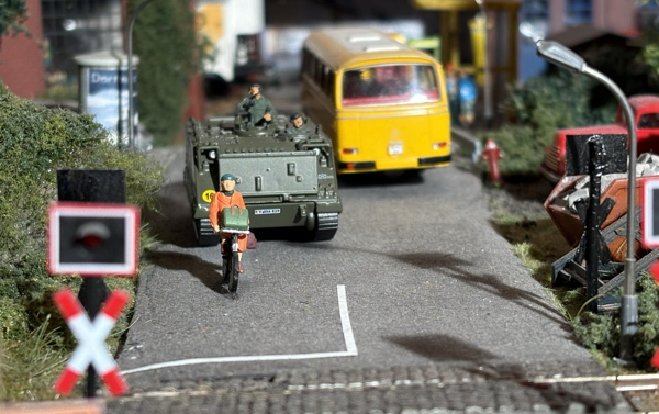 Anmerkung: Der M113 konnte überhaupt nur durch zahlreiche Ausnahmeregelungen seine Straßenzulassung bekommen und auch behalten. Erst ab der Version A3 gab es dann endlich ein Notbremssystem, bei dem durch zusätzliche Bremsscheiben hinter dem Lenkgetriebe ein schneller Stopp erreicht werden konnte. Das Fahrzeug stieg dann auch hoch und stand dann praktisch auf dem Stück Kette zwischen Antriebsrad und erstem Laufrad. Abenteuerlich und immer noch gefährlich, aber das hätte damals geholfen. Hätte hätte Panzerkette - während ich das hier schreibe, merke ich, dass mein Puls bei der Erinnerung an diese Situation tatsächlich immer noch hochgeht. Das hätte böse, sehr böse ins Auge gehen können, damals im Lipperland. Es war die gefährlichste Situation in meinem bisherigen Leben, darum wollte ich das Fahrzeug unbedingt auf der Anlage haben, vielleicht eine Art der Traumabewältigung - nach mehr als fünfzig Jahren...