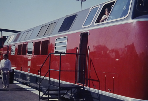 Die V200 - erste Großdiesellok der jungen Bundesbahn - nimmt in meinem Herzen eine Sonderstellung ein. 1965 ging´s auf der IVA in München nicht nur mit bahnbrechendem Tempo 200 mit der brandneuen E03 nach Augsburg, ich saß auch im Führerstand der V200, schon in den 60ern wichtig in meinem Leben, denn - aber bitte nicht weitersagen - ich war damals Vorsitzender (und einziges Mitglied) des "Pfiff-Clubs V200 hoch 1". Man tat noch was für eisenbahnbegeisterte Kinder. Bis heute werden kritische Aktionen meinerseits in der Familie mit einem abschätzigen "Der Pfiff-Club lebt" kommentiert! So etwas bleibt einfach nicht in den Klamotten hängen, das begleitete den Menschen durch das ganze Leben.