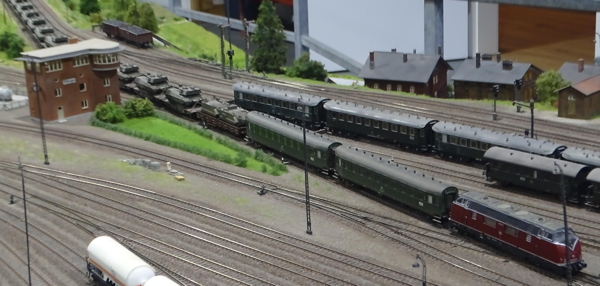 Während des Wehrdienstes habe ich eine Nachtfahrt auf dem Führerstand einer V200 erlebt, Rückfahrt im Ganzzug von einem Manöver, Hamburg bis Paderborn. Die Panzer hinten drauf und während die Kameraden in den Uraltpersonenwagen sogar die Gepäcknetze nutzten um eine Mütze Schlaf zu ergattern, hatte ich vorn einen Logenplatz in der ersten Reihe. Ich habe den Lokführer einfach bei einem Halt gefragt - und der war froh über die Gesellschaft bei der einsamen Fahrt durch die Nacht. Genau so ein Zug fährt auf der Modellbundesbahn in Brakel, ich überlege derzeit, ob ich einen solchen Manöverzug auch durch Timmerbruch fahren lassen soll...