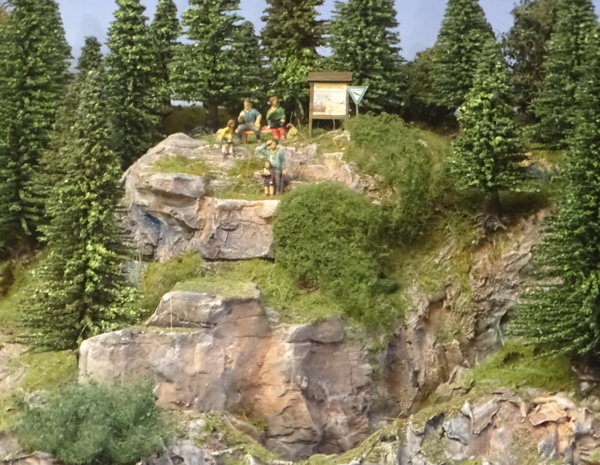 Die meisten Felspartien sind auf diese Weise direkt "vor Ort" entstanden. Ein paar prominente Gesteinsformationen habe ich mit gegossenen Einzelstücken gestaltet (Woodland) - etwa den Schorveskopf hoch über Timmerbruch. Das schien mir angemessen und ich finde, diese Formation sieht klasse aus. Der echte Schorveskopf hier in Dortmund ist etwas weniger auffällig, nur eine Erhebung, die wir beim berühmten Viermärker Waldlauf zu bewältigen hatten, jeden Samstag 19 Kilometer in 100 Minuten. Und den Schorveskopf hoch schaffte man nur Fuß vor Fuß, schnaufend, fluchend, aber oben angekommen gab´s dann Endorphine im Überfluss. Jogger kennen das Gefühl. Eigentlich alle Menschen, die eine Herausforderung gemeistert haben.