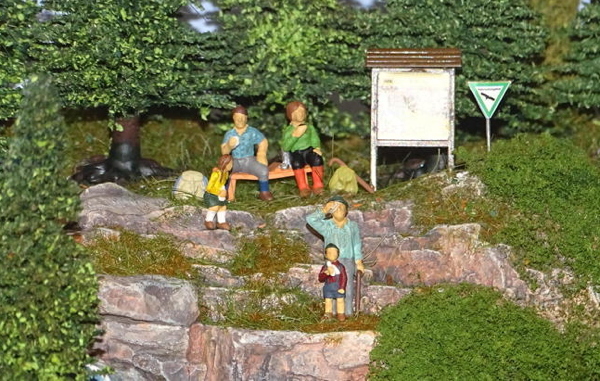 Dazu gehört sicher die Wandergruppe auf dem Schorveskopf, jener steinigen Erhebung westlich des Bahnhofes. Mit ihr wollte ich auf dem felsig-grauen Gipfel einfach einen Farbtupfer platzieren. Eine kleine Auflockerung im eintönigen grau-grün-grau des Randgebirges.