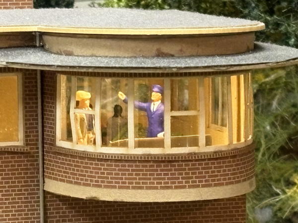 Auch die Diskussion im Stellwerk gehört zu den Katzen-Momenten. An der Rundung identifiziert der Kenner das Stellwerk Ottbergen. In der Tat, eine kleine Verbeugung an diesen Sehnsuchtsort der letzten Dampflokjahre und auch an die Modellbundesbahn, die ja Ottbergen als Thema hat. Aber ansonsten ist die Inneneinrichtung spartanisch, bei vielen Gebäuden oft nur ein Fotodruck an der Wand.