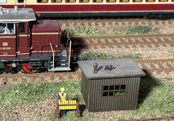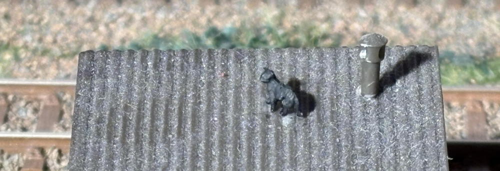 Irgendwie hat es mich in den Fingern gejuckt, als ich die Wellblechbude für meine Rangierer aufgestellt habe. Auf das Blechdach - da gehört doch eine Katze drauf. Den Skandalfilm aus den 50ern habe ich nie gesehen, der Titel aber war mir irgendwie im Kopf. Und so tapst da jetzt ein schwarzer Kater über das Dach, die Sonne scheint und der Stubentiger dürfte schon ganz schön warme Pfötchen bekommen haben. Es macht nicht viel her, kaum jemand bemerkt es und so gehört dieses Detail zu den vielen kleinen Stellen auf der Anlage, wo mich die Phantasie geritten hat. Oder der Wahnsinn. Wo ich Dinge realisiert habe, die eigentlich ohne jede Konsequenz auf das "Gesamtkunstwerk" sind. Die aber da sind und die bei manchen Besuchern zu kundigem Schmunzeln führen, Stellen, die ich zur Katzen-Kategorie zähle. ..