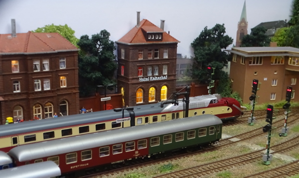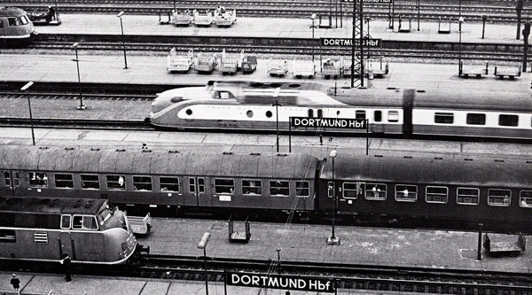 Ich habe es ja im Epilog beschrieben: All´ das gab es damals in Dortmund Hbf - und das alles will ich auch auf meiner Anlage sehen. Dortmund war schon immer Zugbildungsbahnhof, dazu endete hier der Fahrdraht aus dem Süden, es musste also umgespannt werden. Hier fuhr einfach alles, und das alles fährt auch durch Timmerbruch - und sei es nur für eine kurze Paradefahrt, etwa der des VT 11.5. Leider nur als Gastriebzug, das Originalfahrzeug ist nicht mehr lieferbar. Nur noch diese "Intercity-Variante". Doch die trägt inzwischen auch das berühmte TEE-Emblem an den beiden Triebköpfen. Hat mir zwar Kritik im Kollegenkreis eingebracht, aber es gab in der Tat Gastriebköpfe...
