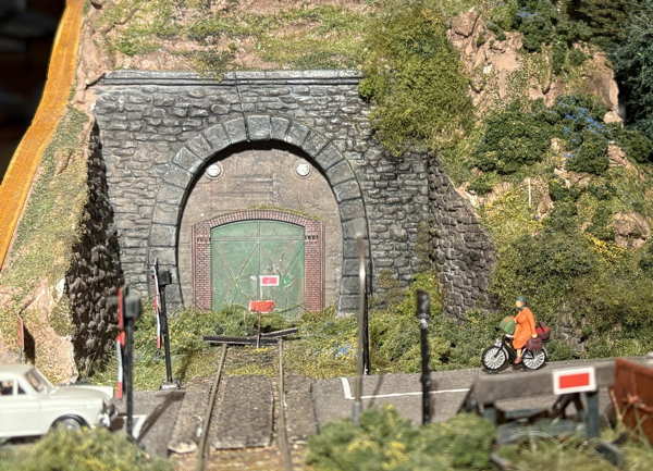 Nicht alles, was ihr oben gelesen habt, findet seine Entsprechung auf der Anlage. So führt das Gleis nach Timmebruch-Altstadt gleich in einen Tunnel, so dass die Steilstrecke und die absolut sehenswerte Altstadt "leider" nicht nachgebildet ist - tut mir extremst leid. Dafür aber läuft dieses Gleis hinter der Anlage weiter und endet in meinem "Fiddle-Yard für Arme" - das Werkstattgleis für Reinigungsarbeiten und zugleich auch mein Programmiergleis. Auf jeden Fall bieten die oben angenommenen Vorgaben zahlreiche Möglichkeiten für einen interessanten und manchmal anspruchsvollen Betrieb.