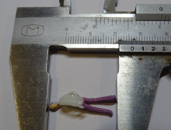 Figuren aus diesen Konvoluten können zum Teil - ich gebe zu: zu einem sehr kleinen Teil - unverändert genutzt werden. Die meisten aber brauchen etwas Nacharbeit, manchmal auch etwas mehr davon. Teilweise ist die Kleidung mit Farben gemalt, die hier kein Mensch tragen würde. Kreisch as Kreisch could be! Erst recht nicht in Epoche III, da war man noch SEHR konservativ was die tragfähigen Farben anging. Rote Hosen habe ich damals bei Männern nicht gesehen und giftgrüne Kleider hätten mindestens zu allgemeinem Nasenrümpfen geführt. In ganz vielen Fällen kann man sich darauf beschränken, diese Teile der Figuren zu übermalen. Manchmal muss man sie auch einfach zurückschicken. Dann nämlich, wenn der Maßstab zwar mit 1:87 angegeben ist, aber anscheinend nur Titanen in der Packung sind - 2,6cm, das ist mehr als Gulliver bei seinen Reisen im Land der Riesen zu Gesicht bekam.