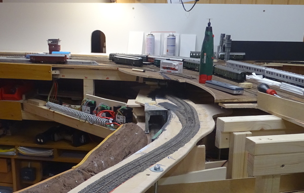 ...sieht es nun so aus wie ganz oben im großen Foto zu sehen - Platz genug auch für besonders hohe Fahrzeuge und auch langkesselige Dampfloks haben hier in der Kurve keine Probleme. Nur eine 03.10 - die fehlt mir bis heute. Aber man kann ja auch nicht alles haben....